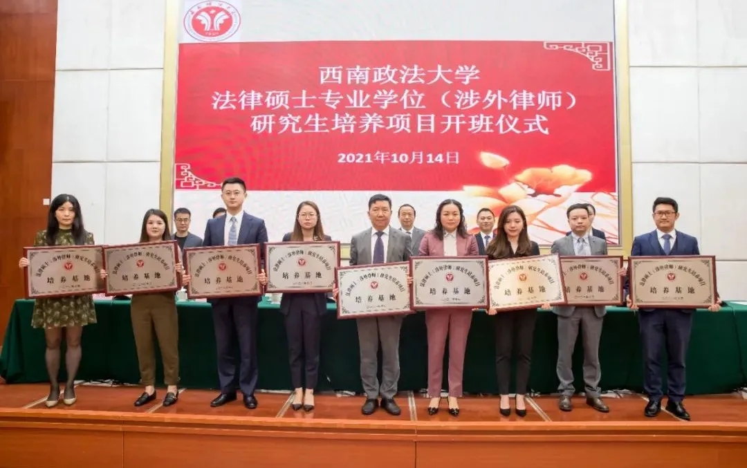 2021年10月14日,西南政法大学首届法律硕士专业学位(涉外律师)研究生培养项目开班仪式在西政渝北校区毓才楼一楼学术报告厅举行。会议举行了授牌仪式,中豪入选西政法律硕士(涉外律师)研究生培养项目培养基地,本所纽约办公室副主任、合伙人吕睿鑫代表事务所接受授牌。