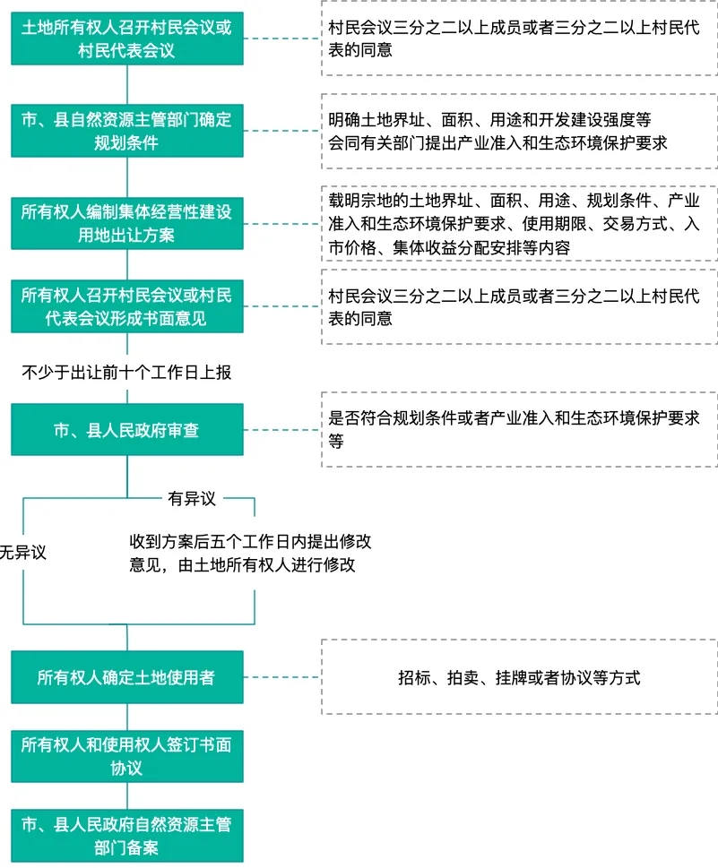《土地管理法》及实施条例对集体经营性建设用地分别从入市条件、入市方式、入市不同阶段几方面作出了规定。