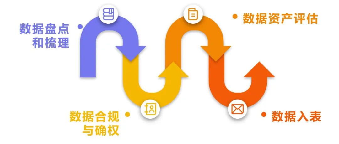 根据《暂行规定》及相关会计处理原则,参照一般资产入表的流程,数据资产入表的流程可大致分为数据盘点和梳理、数据合规合规与确权、数据资产评估以及数据入表共四个方面工作。
