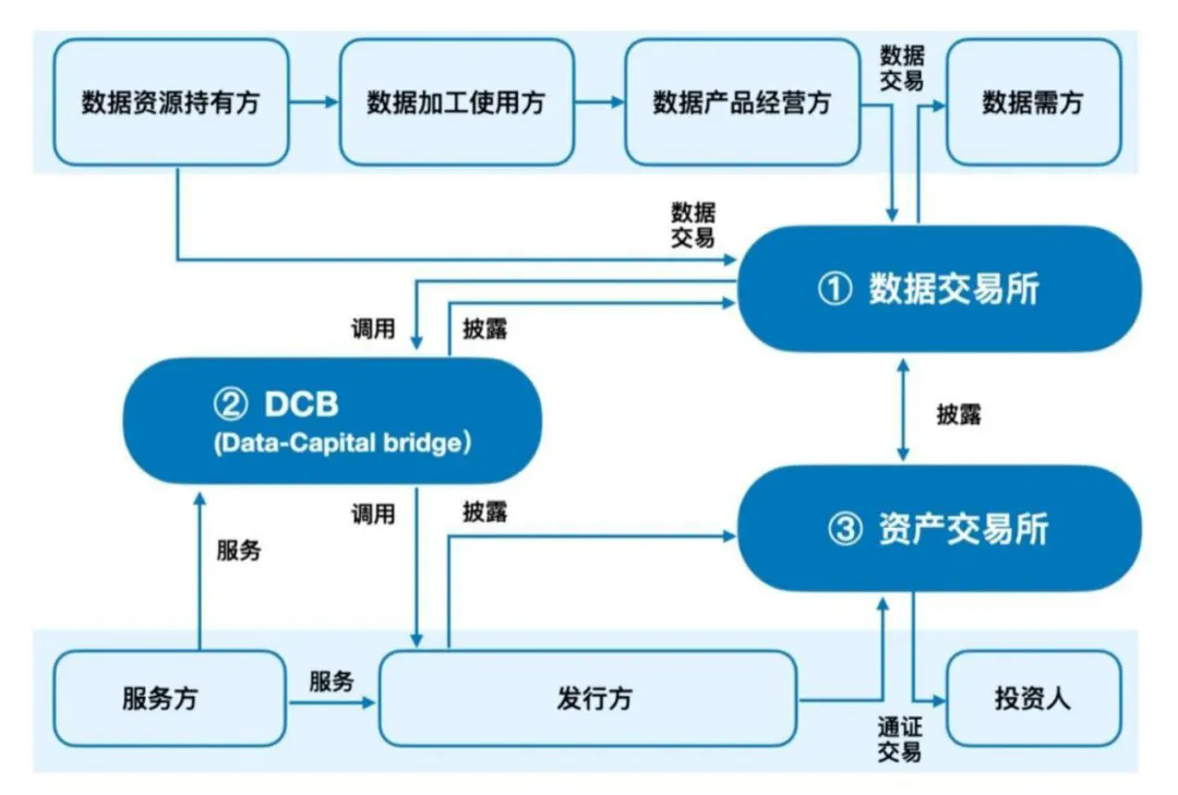 2024年诞生的上海“数易贷”就是此种模式的典范之作。上海“数易贷”是由上海数据交易所主导,联合多家银行共同推出的数据资产金融服务产品。该产品实现了贷前、贷中及贷后的全生命周期管理,通过数据资产“一桥、两所、两轴”的DCB(Data-Capital Bridge)架构,全面、动态、实时、准确地描述数据资产形成与确认、流通与融资的全过程。该架构是底层资产数据披露的关键基础设施,能够确保数据资产的真实性、合法性和不可篡改性,为数据资产的质押提供了坚实的技术保障。在此过程中,银行基于DCB数据资产凭证的动态资产数据开展信贷业务,并结合上海数交所给出的数据资产价值指导意见,据此发放贷款。