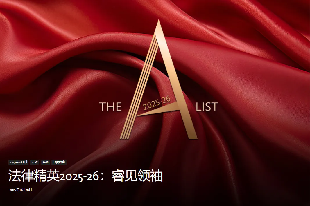 2025年11月26日,《商法》(China Business Law Journal)公布2025年度榜单,中豪管委会副主席杨青律师成功荣登“A-List法律精英:中国业务睿见领袖”(Visionary Leaders)榜单,这是继2018年首次入选《商法》“A-List法律精英”榜单之后,再次荣膺殊荣。