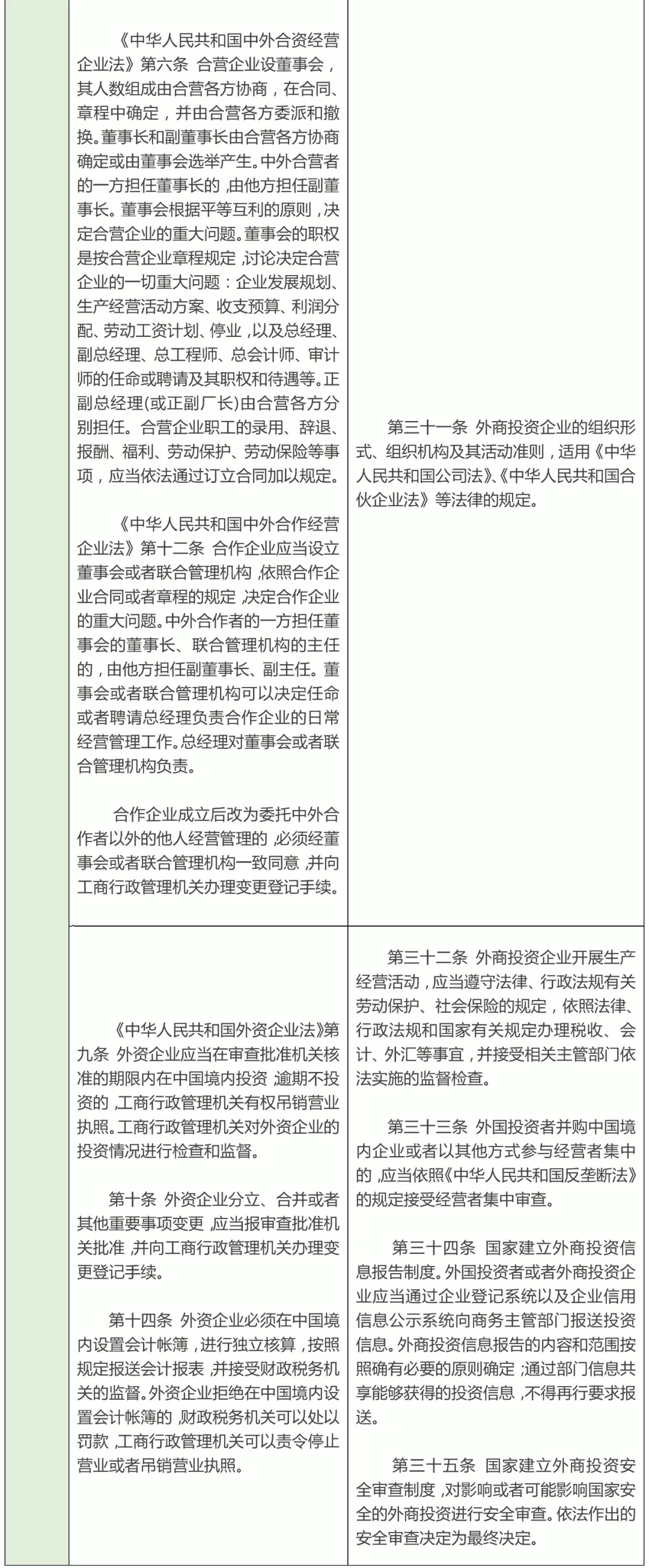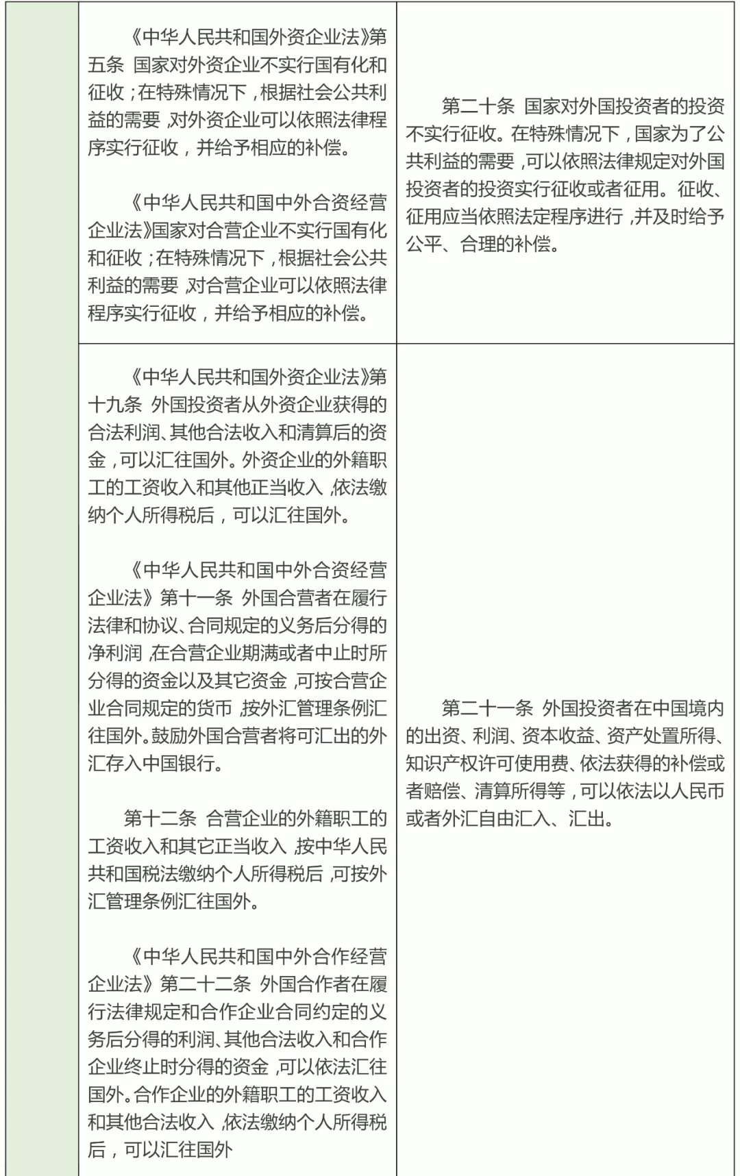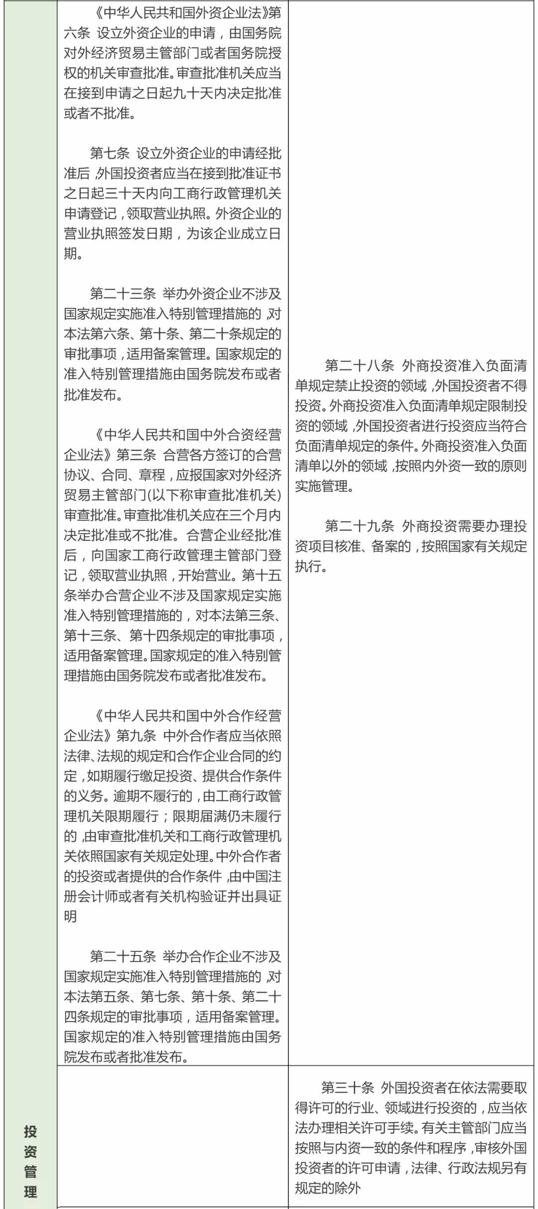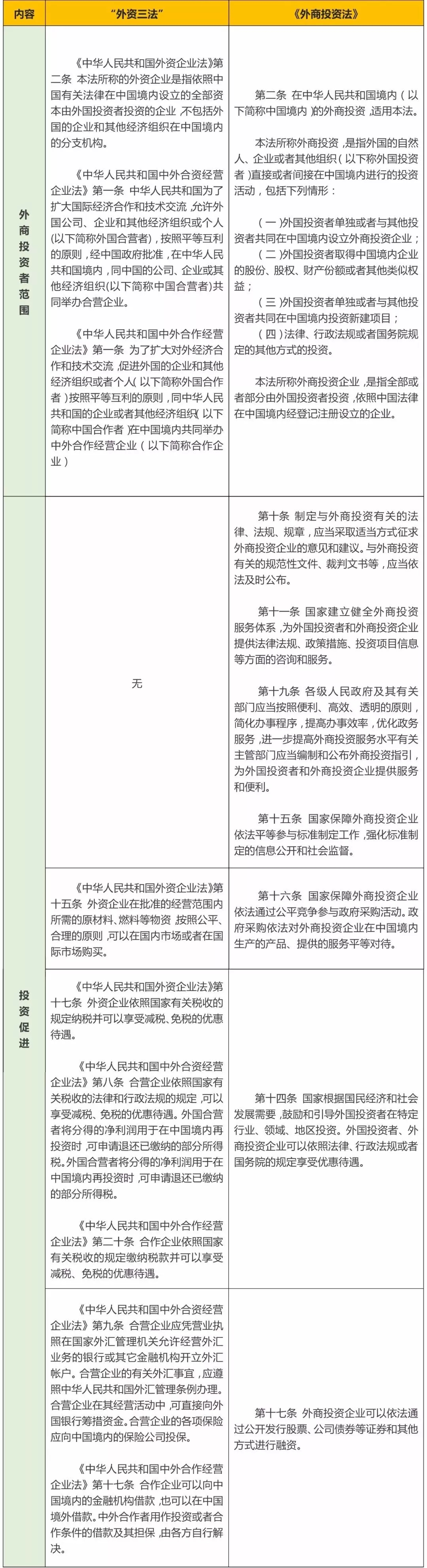 附:“外资三法”与《外商投资法》的主要条款对比一览