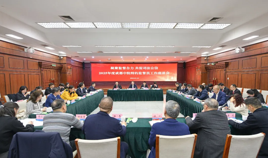 2026年1月13日,成都市中级人民法院隆重召开了“凝聚监督合力·共促司法公信”2025年度特约监督员工作座谈会。会议通报了全市法院2025年的总体工作情况,认真听取了特约监督员们的意见建议,并对下一步工作方向作出了部署。成都中院党组书记、院长杨诚出席并讲话,党组副书记、副院长李光旭主持会议,党组成员、副院长张保川通报了全市法院年度工作。中豪成都办公室主任汪飞作为特约监督员受邀出席了此次会议,并结合专业实践积极建言献策。